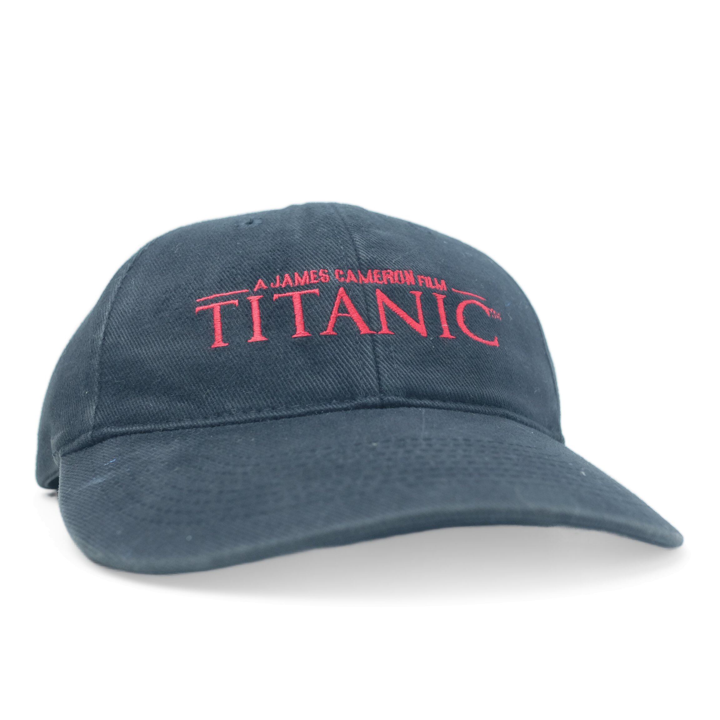 ジェームズ・キャメロン監督の不朽の名作『タイタニック』のヴィンテージキャップです。フロントに「A JAMES CAMERON FILM TITANIC」の文字が赤い刺繍で施されています。